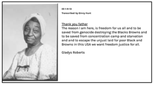 As an educator, I see the value of engaging students in transcription work on multiple fronts – it provides them with unique first-person glimpses into a contested history and movement; it situates and empowers students as producers of knowledge; and, importantly, it prompts students to reflect on the power dynamics of producing and sharing knowledge about contested histories and lived experiences.