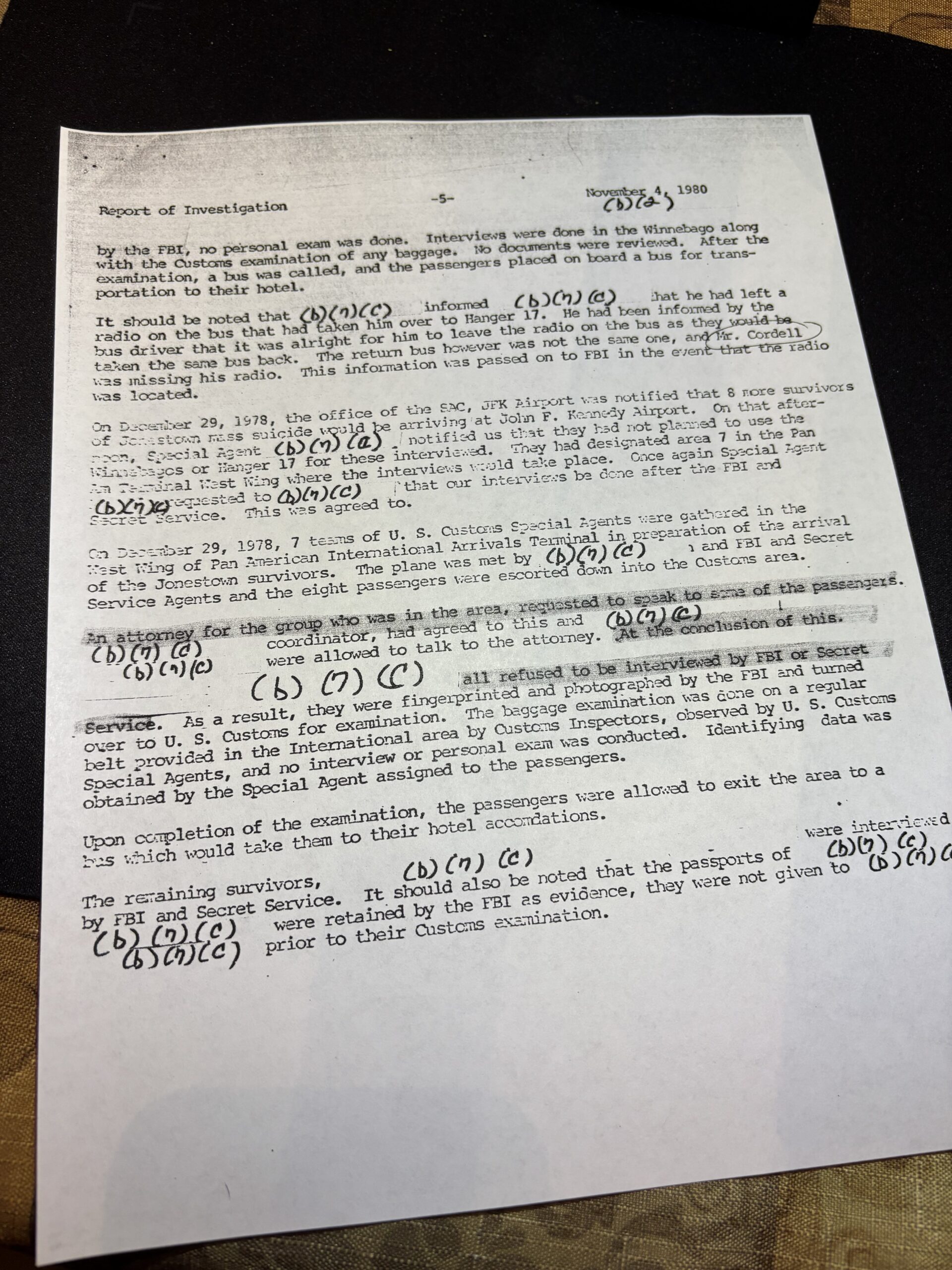 The largest collection I explored consisted of correspondence, notes, and the Freedom of Information (FOIA) files from none other than the website managers themselves. In the near half century since the Jonestown tragedy, McGehee and Moore filed more than fifty FOIA requests with more than 20 federal agencies, as well as three FOIA lawsuits against the Department of Justice (FBI) and CIA, in a search for all government records related to Peoples Temple, Jonestown, and some of its leaders. Their tireless efforts have resulted in the release of tens of thousands of documents on Peoples Temple, many of which are available and have been transcribed on this site.