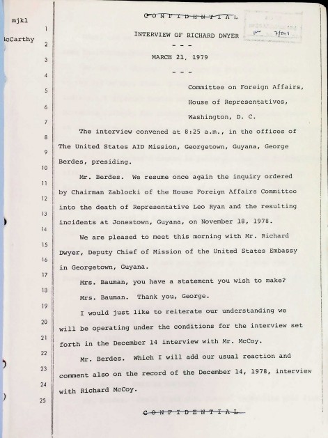 Interestingly enough, while skimming along the SIG’s notes from their interview process during their trip to Guyana and Jonestown, the three consultants attempted to interview a number of Guyanese who had direct information. Officials at the American embassy in Georgetown expressed skepticism at the idea, however, and they dropped the request.